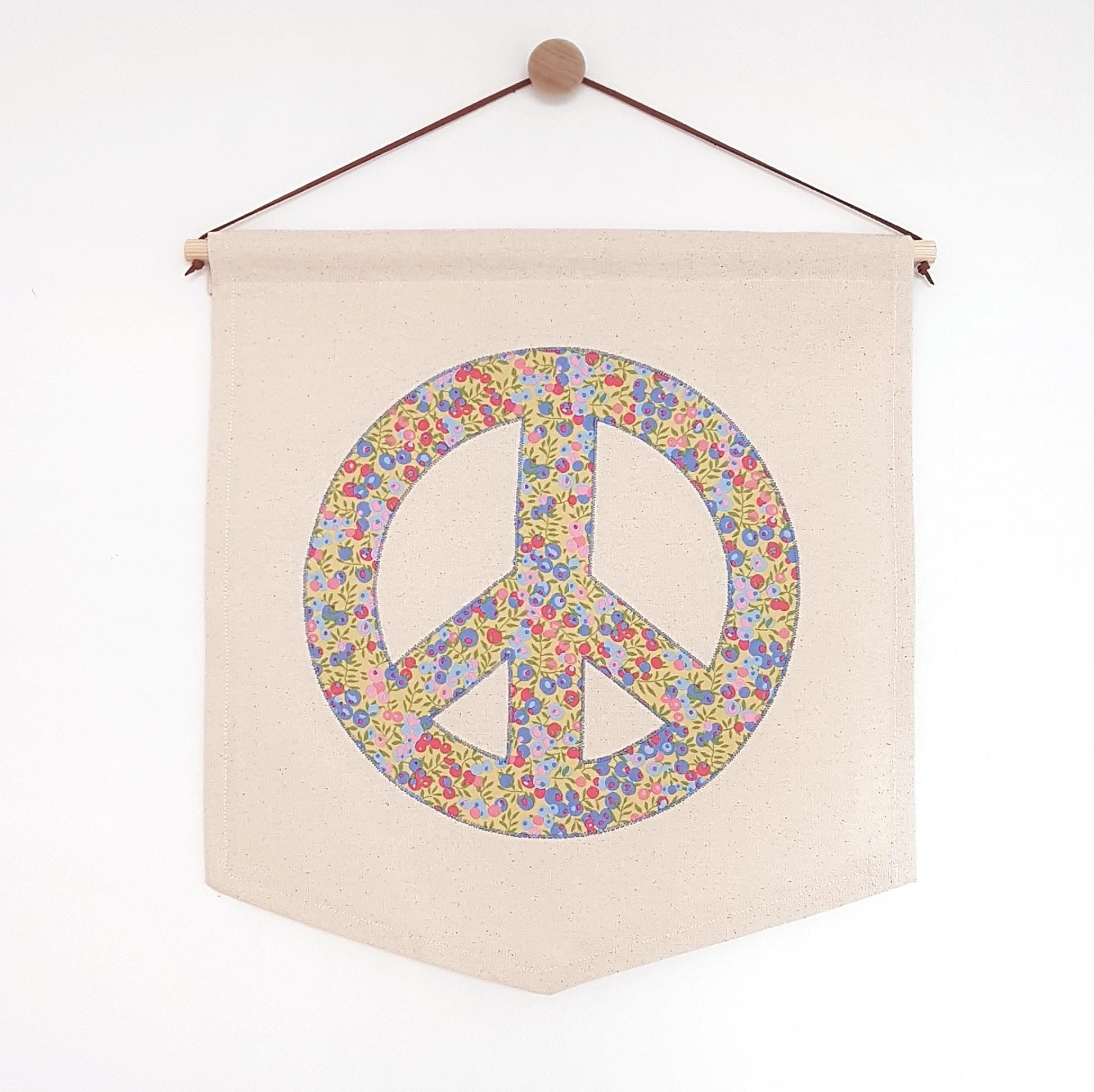Customise your peace sign wall hanging by choosing any of the printed fabric options available.