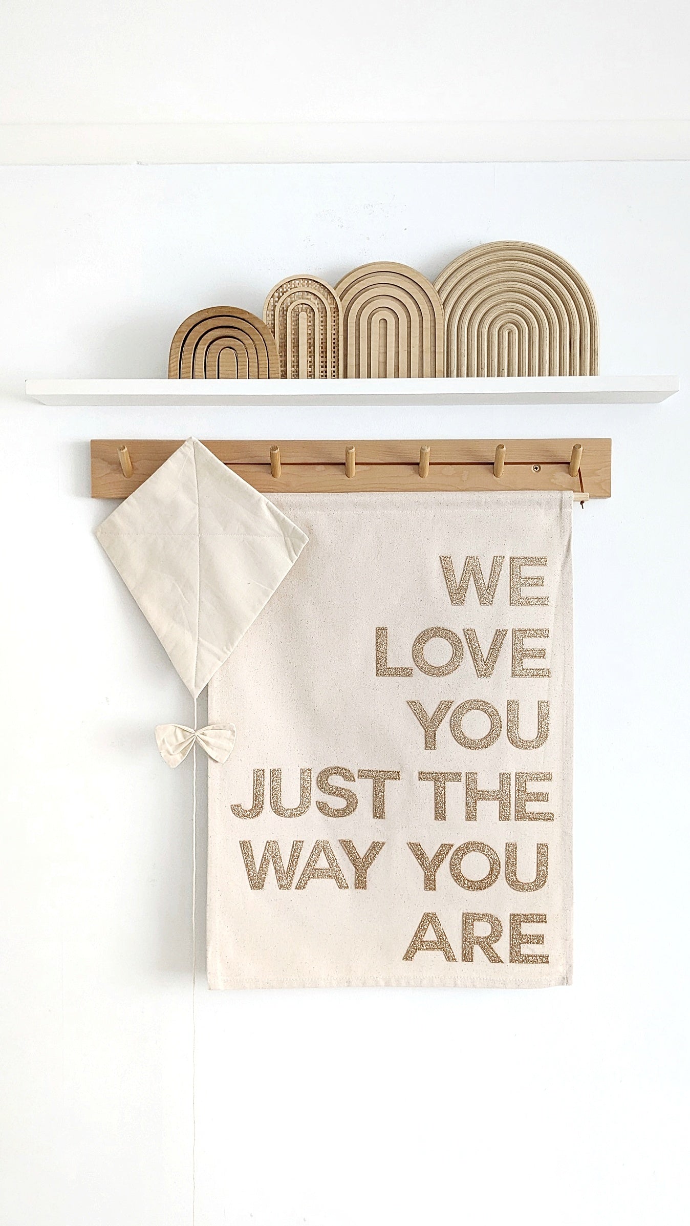 Gold "We love you just the way you are" banner