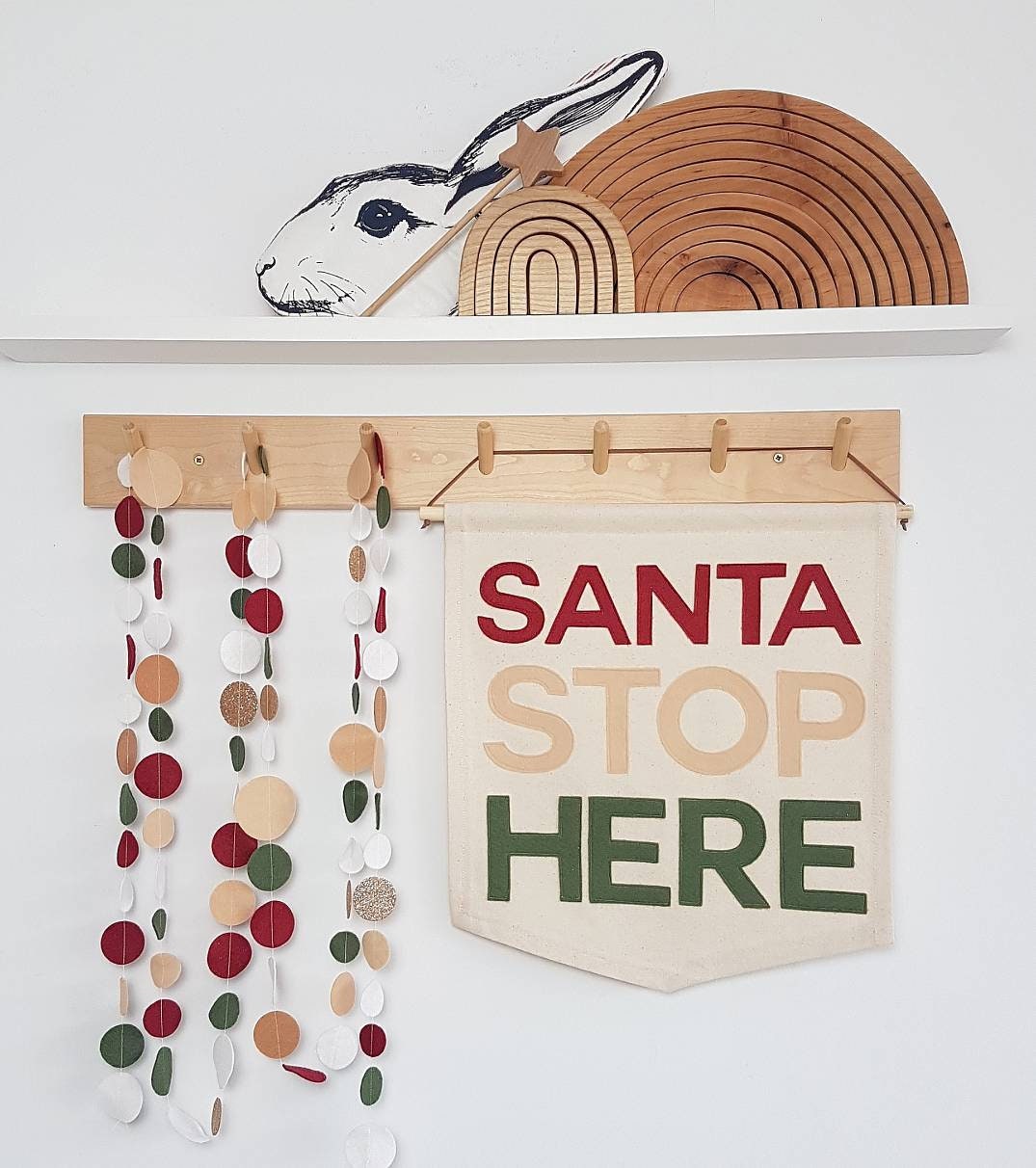 Santa Stop Here Christmas banner, wall hanging