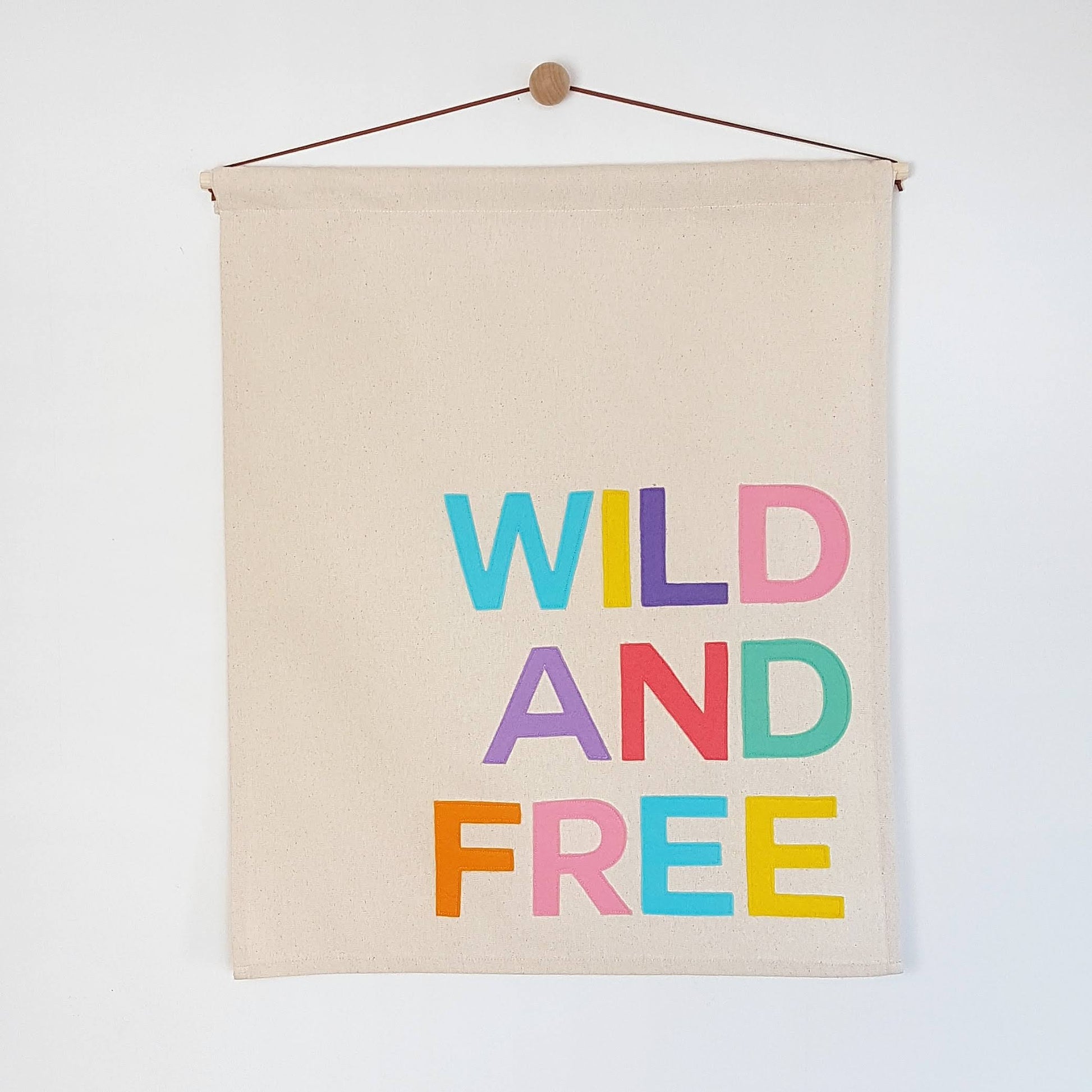 Wild and Free banner, wall hanging. As seen on The Toddler Club with Giovanna Fletcher